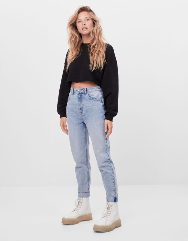 Mom Jeans Mit Umschlag Join Life Bershka Germany