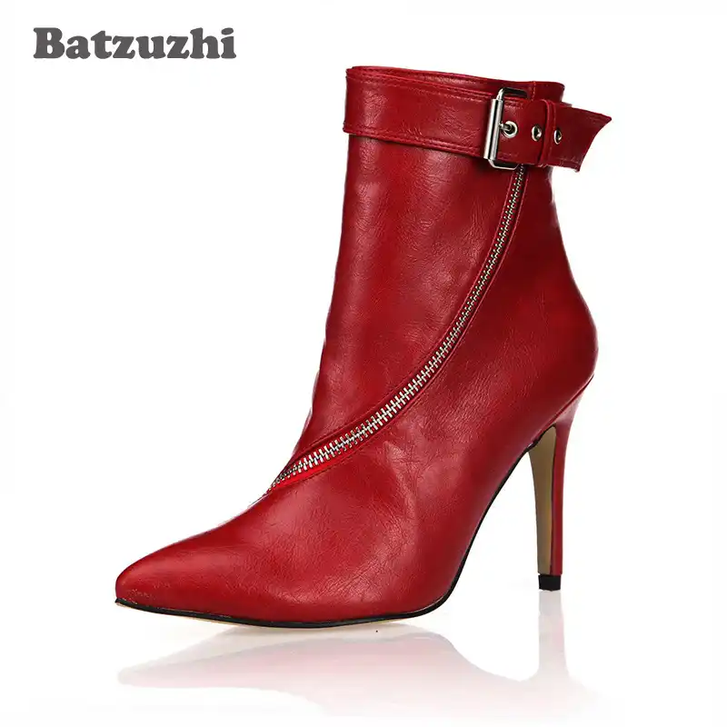 Batzuzhi 9 8cm Rock Mode Frauen Schuhe Spitz Zip Rot Leder Stiefeletten Fur Frauen Motorrad Kurze Stiefel Damen Grosse Grosse Ankle Boots For Women Boots Fashionfashion Boots Aliexpress
