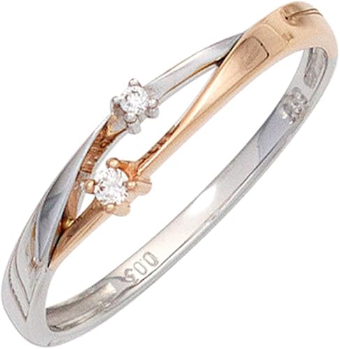 Jobo Damen Ring 585 Gold Weissgold Rotgold Kombiniert 2 Diamanten Brillanten Goldring Amazon De Schmuck