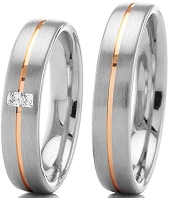 Paar Bicolor Trauringe Eheringe In Weissgold 585 Rotgold 585 Mit Zus 0 06 Ct Brillant Tw Si Von Acredo
