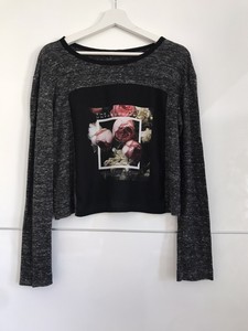 Euwertiges Schwarzes Graues Cropped Langarm Oberteil Von Zara L Ebay