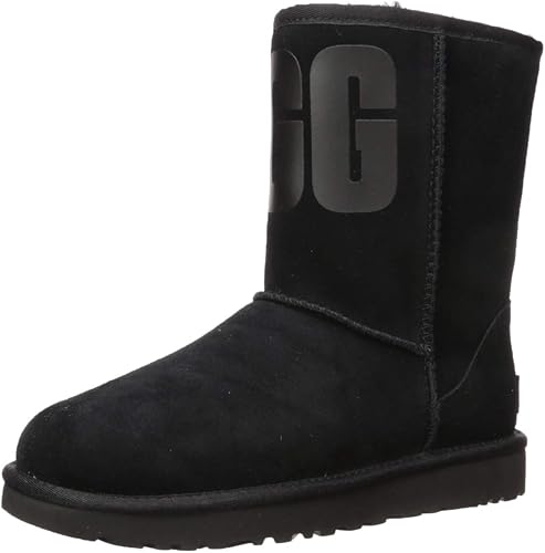 Amazon Com Ugg Women S Classic Short Rubber Logo Boot Mid Calf