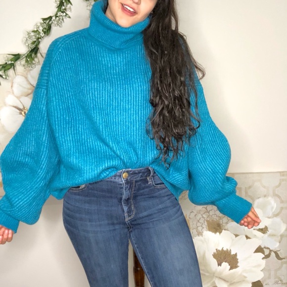 H M Sweaters Hm Teal Turtleneck Oversized Pullover Sweater Poshmark