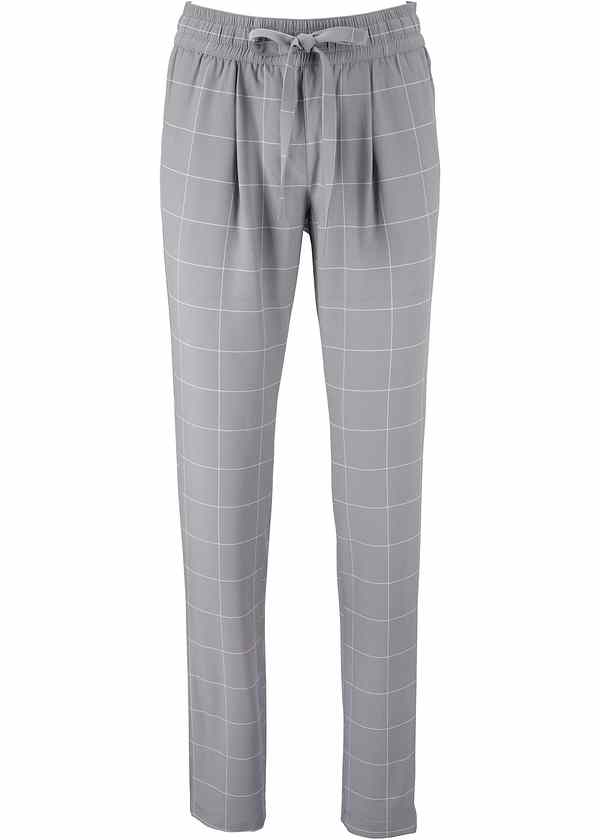 Bequeme Glencheckhose Mit Elastischem Rundumbund Und Bindeband Grau Kariert