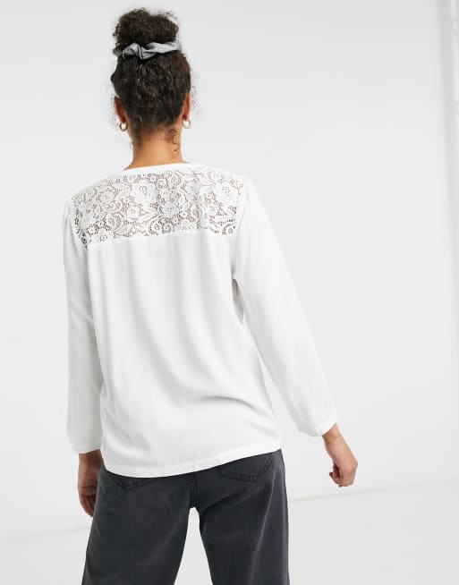 Jdy Weisse Bluse Mit V Ausschnitt Spitzen Einsatz Und 3 4 Armeln Asos