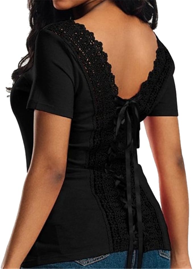 Damen Sexy T Shirt Tops Bluse Oberteil Mit Spitze Amazon De Bekleidung