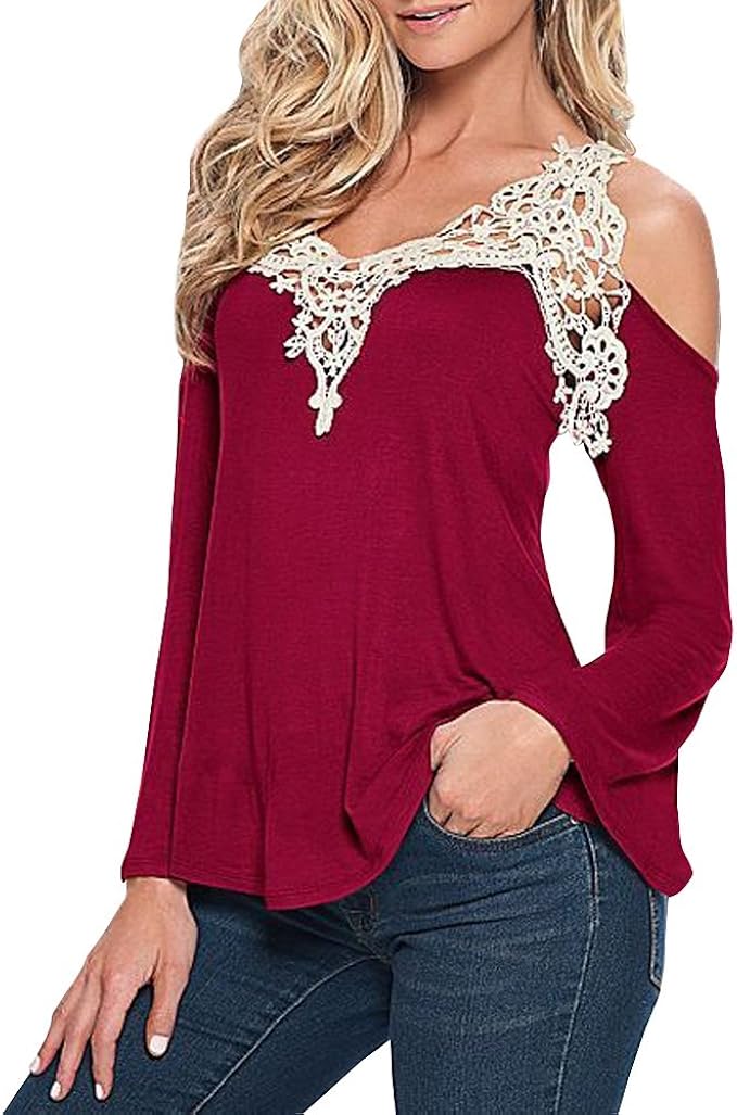 Damen Spitze Langarmshirt Schulterfrei Freizeit Slim T Shirt Bluse Oberteil Tops Ebay