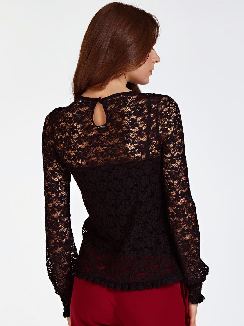 Spitzen Oberteil Mit Langen Armeln Black Only Spitzen Oberteil Modestil Oberteile