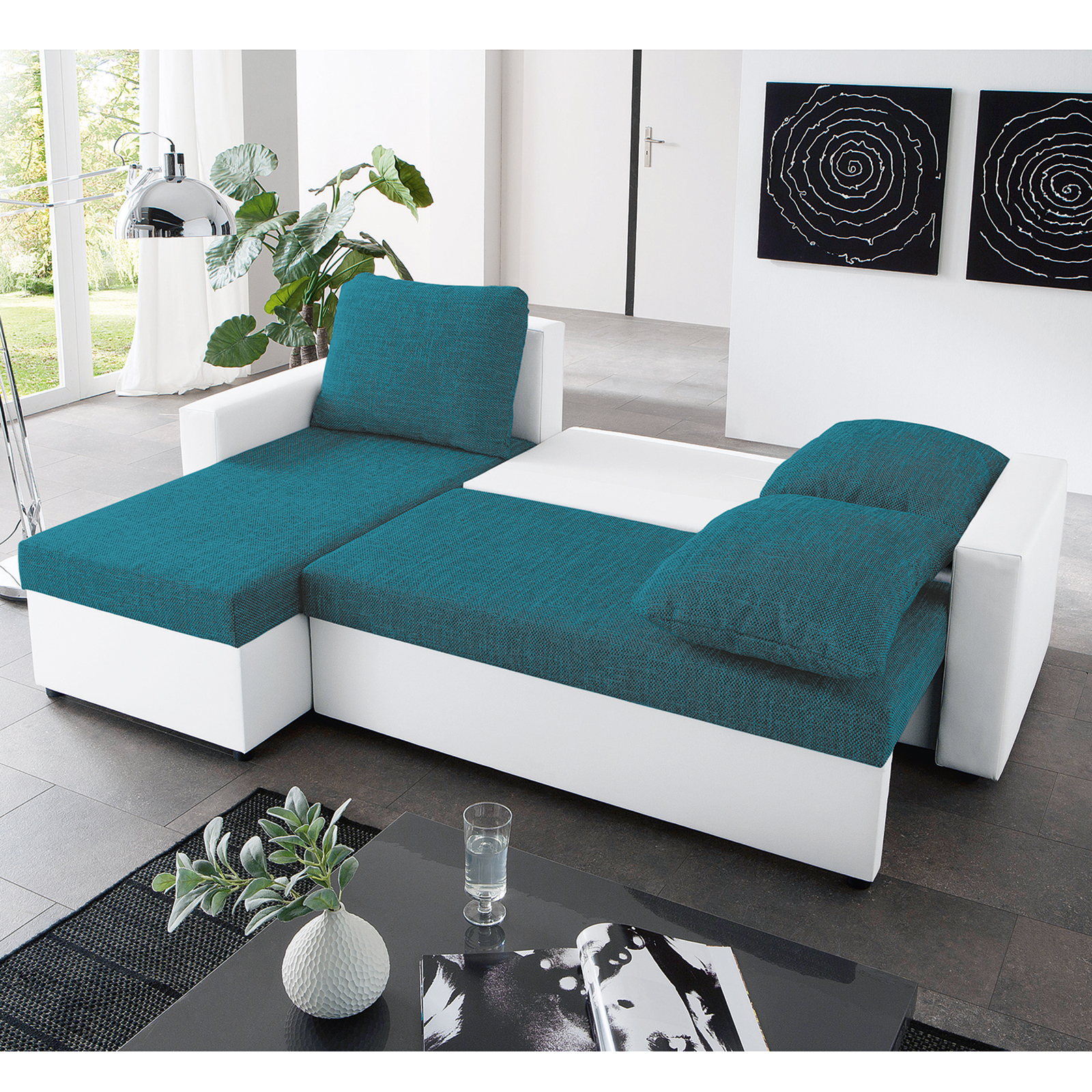 Udine Ecksofa 310x0 Cm Petrol Weiss Gunstig Mobel Kuchen Buromobel Kaufen Froschkonig24