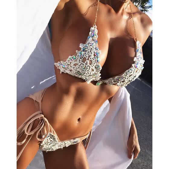 Shop Women Sequin Rhinestone Crystal Diamond Push Up Bikini Set Bra Swimsuit Swimwear Online From Best Swimsuits Cover Ups On Jd Com Global Site Joybuy Com
