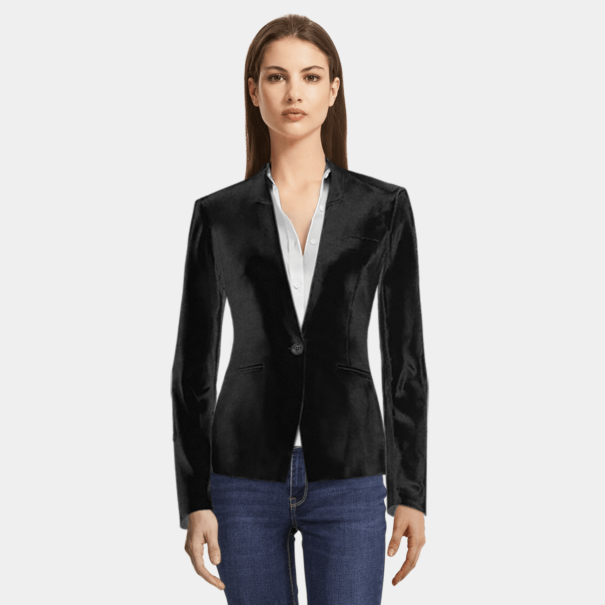 Schwarzer Ein Knopf Kurzer Blazer Aus Samt Ohne Revers 129 Sumissura