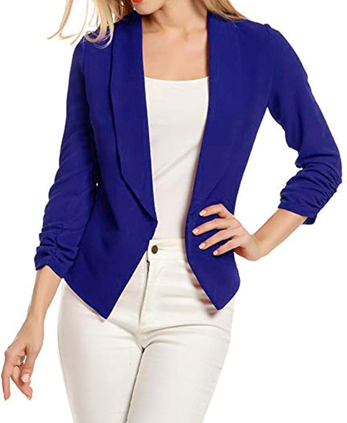 Battnot Damen Blazer Elegant Kurz Schwarz S Xl Frauen Anzug Tops Arbeits Buro Solide Strickjacke Falten 3 4 Armel Slim Fit Dunne Ubergangsjacke Business Formal Klage Mantel Womens Suit Coat Outwear Amazon De Bekleidung