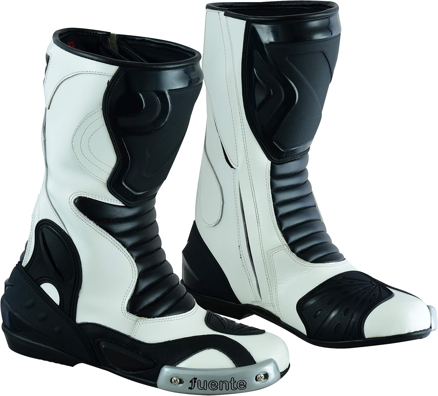 Motorradstiefel Biker Stiefel Herren Schwarz Weiss Fuente Hochwertige Leder Motorradschuhe Motorrader Ersatzteile Zubehor Schutzkleidung