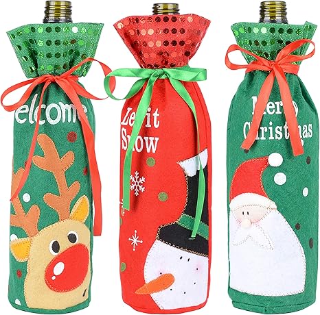 Buondac 3 Stk 3 Muster Geschenktuten Fur Weinflaschen Weinflaschenbeutel Geschenktaschen Weihnachten Flaschen Geschenkbeutel Taschen Beutel Flaschentuten Weintasche Amazon De Kuche Haushalt