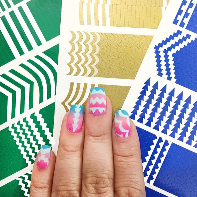 601 Reusable Nail Art Stencils Vinyl 16 Different Shapes Chevrons Tribal French Tip More Adhesives Stripe Guides Patterns Designs 3 Sheets Supplies Kit Sticker Tape Decal Craft Gift Teen Girl Beauty Amazon Com