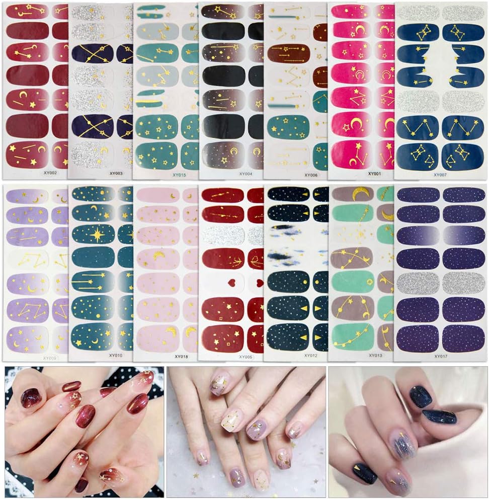Amazon Com 14 Sheets Nail Wraps Full Nail Art Polish Stickers Self Adhesive Nail Art Decals Strips Manicure Kits Nail Art Designs Arts Crafts Sewing