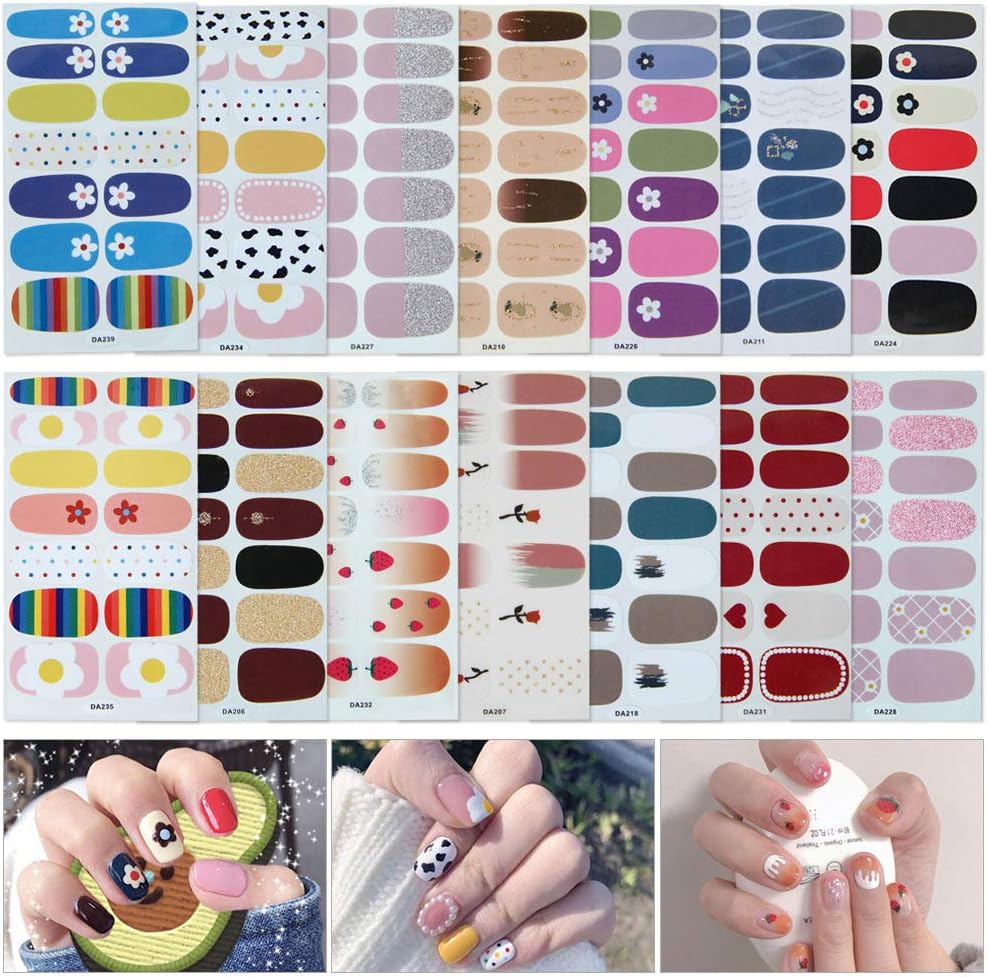Amazon Com 14 Sheets Full Wraps Nail Polish Stickers Self Adhesive Nail Art Decals Strips Manicure Kits Nail Art Designs Kitchen Dining