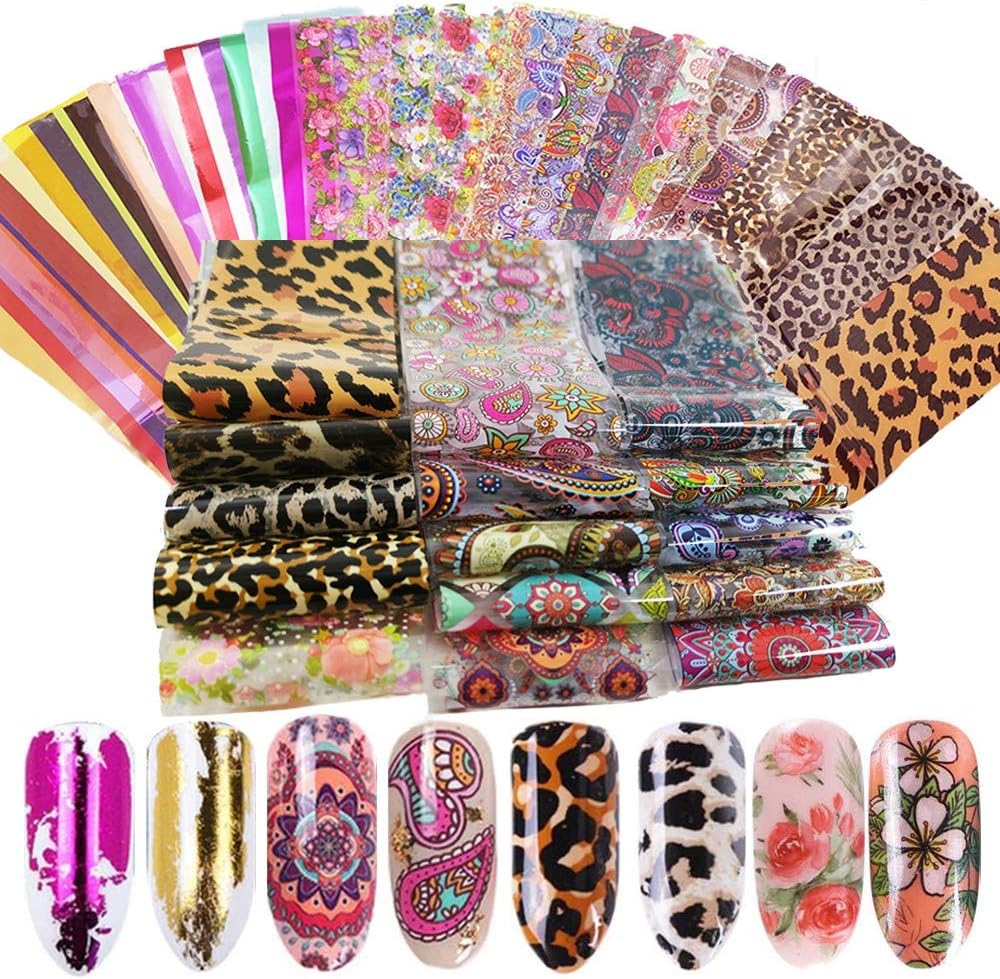 Amazon Com Valuu 50 Sheets Nail Art Foil Transfer Stickers Laser Flower Leopard Print Nail Foil Adhesive Decals Starry Sky Manicure Transfer Tips Nail Art Diy Decoration Kit Kitchen Dining