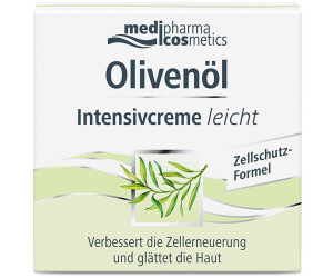 Olivenöl Leichte Gesichtscreme ( 5 Bewertungen ) Die Olivenöl Leichte Gesichtscreme spendet der normalen bis trockenen Haut intensive Feuchtigkeit, strafft und mindert Falten. Die Preisdaten für Medipharma Cosmetics Olivenöl Leichte Gesichtscreme 50 ml werden von den Apotheken zur Verfügung gestellt und stündlich aktualisiert Zwischenzeitliche Änderung der Preise, Rangfolge und Versandkosten sind möglich Sichere Händler/Versandapotheken Bei Sparmedo gelistete Versandapotheken sind alle im Versandhandels. OLIVENÖL LEICHTE Gesichtscreme 50 ml Für OLIVENÖL LEICHTE Gesichtscreme von Dr Theiss Naturwaren GmbH ist noch keine Beschreibung vorhanden Wir möchten Sie bei Ihrem Einkauf in unserer Versandapotheke so gut wie möglich beraten Für viele rezeptfreie Artikel stellen wir einen Beipackzettel und oder die Lebensmittelinformationen im pdf.
