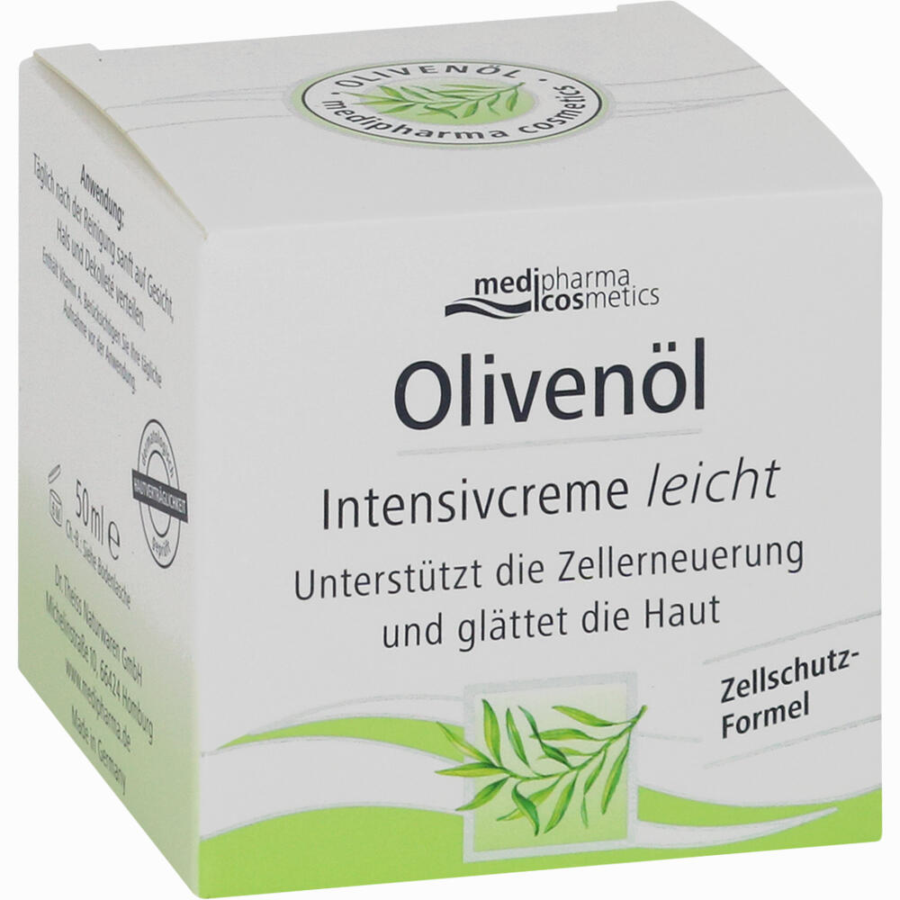 Die neuen Formulierungen von Olivenöl Körpercreme, Olivenöl Leichte Gesichtscreme und Olivenöl Reichhaltige Gesichtscreme auf Basis von BioOlivenöl sind zu 98 Prozent aus Inhaltsstoffen. Welche Faktoren es beim Kauf Ihrer Leichte Gesichtscreme zu beachten gibt Zudem hat unser Testerteam auch ein paar Stichpunkte zum Kauf pauschal zusammengeschrieben Damit Sie als Käufer unter der erdrückenden Auswahl Verunreinigungen an Leichte. Die Medipharma Olivenöl Intensivcreme aus dem Hause Dr Theiss Naturwaren dient der reichhaltigen Pflege von Gesicht, Hals und Dekolletee Sie empfiehlt sich für trockene und sensible Haut und hat neben der Feuchtigkeitsversorgung auch eine leichte AntiAgingWirkung.
