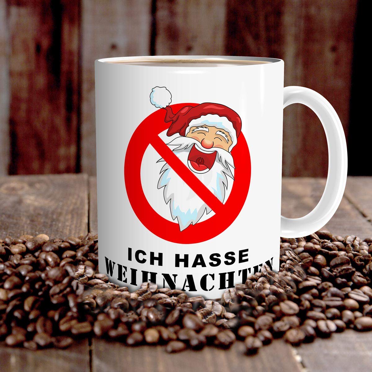 Tassen Becher Untertassen Geschenk Tasse Mit Weihnachtsmotiv Verbotsschild Und Lustiger Spruch Ich Hasse Weihnachten Handmade Produkte
