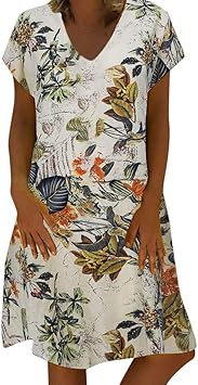 Damen Kleider Sommer Vintage Beilaufige Kurzarm V Ausschnitt Sexy Gross Blumendruck Strandkleid Kleid Polyester Lassig Grosse Maxikleid Eu 46 Weiss Amazon De Baumarkt