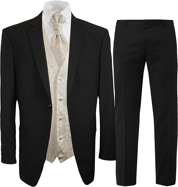 Paul Malone Anzug Hochzeitsanzug Set 7tlg Schwarz Hochzeitswesten Set Ivory Hochzeitshemd Weiss Amazon De Bekleidung