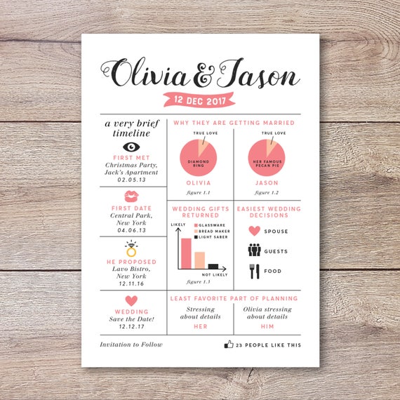 Personalized Infographic Save The Date Card Invite Wedding Etsy