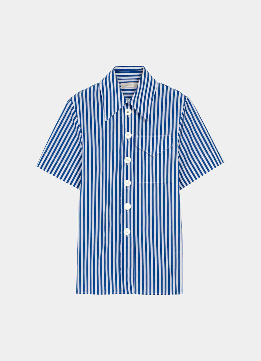 Doyle Bluse Blau Gestreift Mit Kurzarm Baumwolle Polyamid Suitsupply Online Store