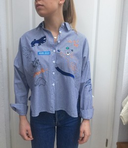 Blau Weiss Gestreifte Bluse Mit Aufgestickten Rosen Bluse Blau Weiss Gestreifte Bluse Gestreifte Bluse