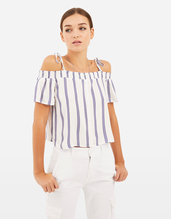 Gestreifte Off Shoulder Bluse Mit Stickerei Blau Weiss La Camicia Myclassico Com
