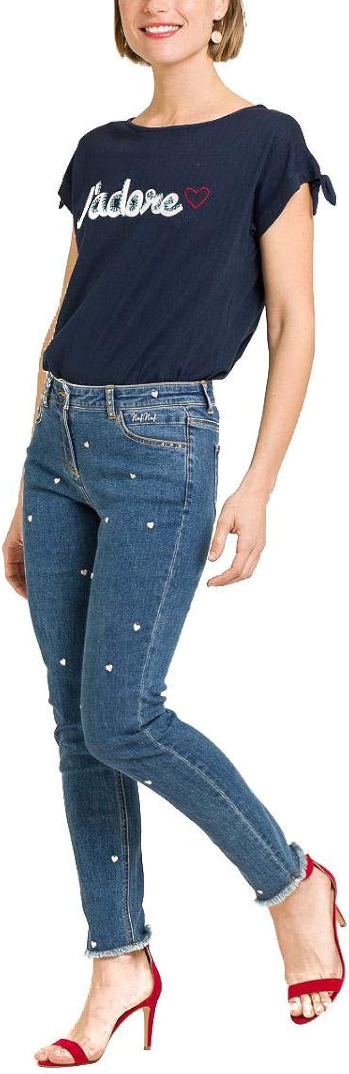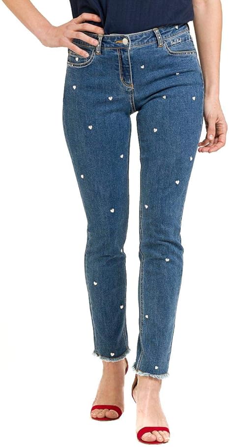 Naf Naf Jeans Mit Herzen Bestickt Damen Blau 42 Amazon De Bekleidung