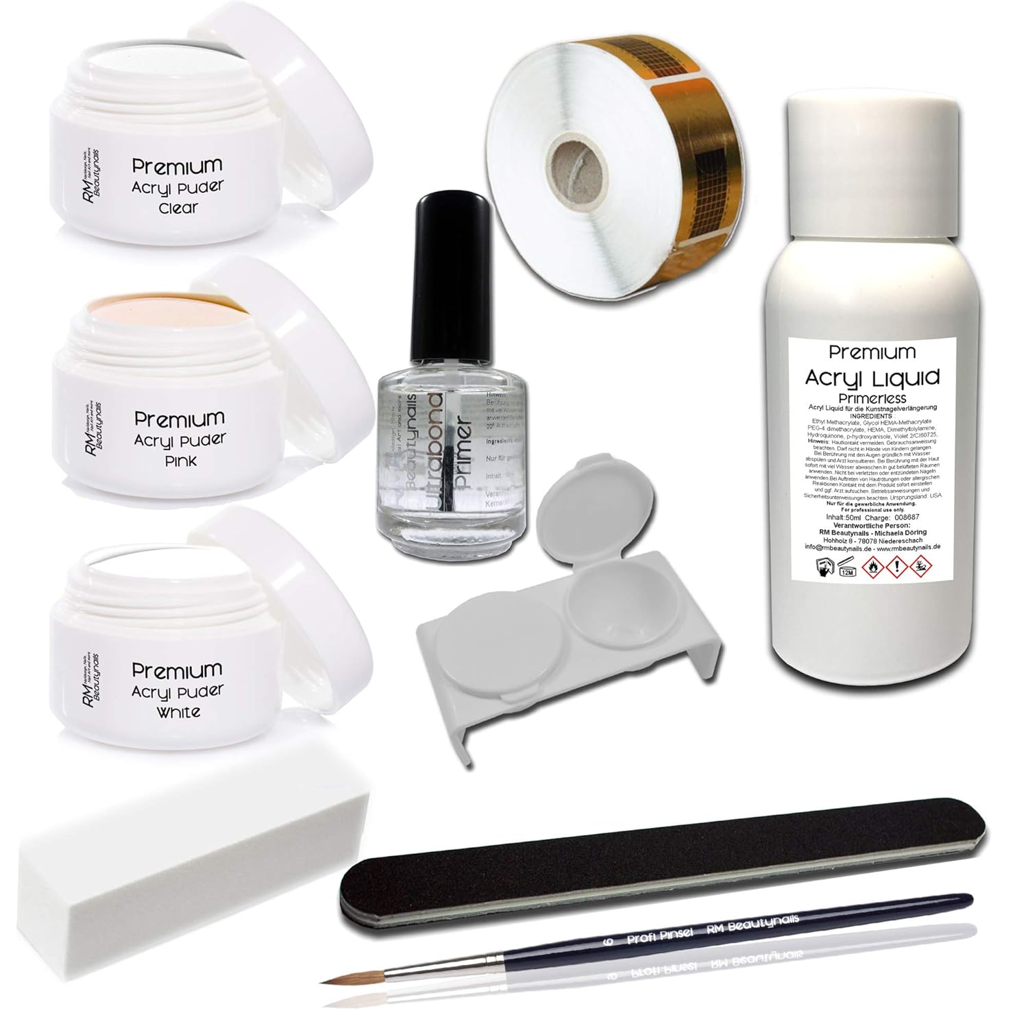 Acryl Set 1 Nagelset Starterset 100ml Liquid Acrylpuder Klar Weiss Pink Primer Feile Buffer Amazon De Beauty In Acryl Set Nagelset Trockene Nagel