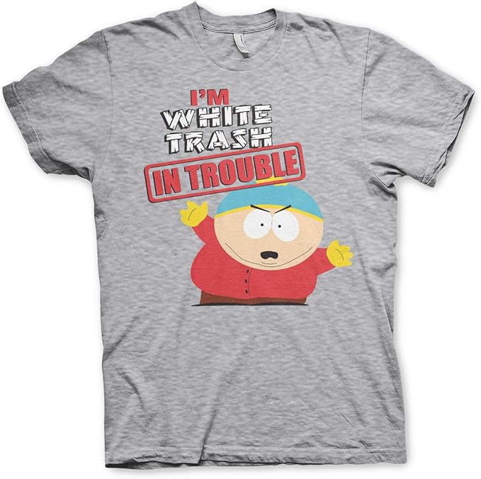 South Park Offizielles Lizenzprodukt I M White Trash In Trouble Herren T Shirt Heather Gray Amazon De Bekleidung