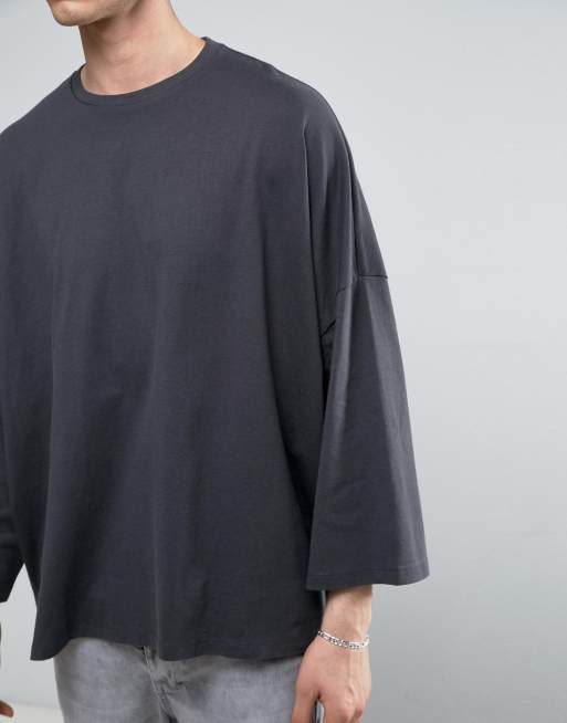 Asos Oversize T Shirt Aus Schwarzem Schwerem Jersey Mit Extrem Weiten Armeln Asos