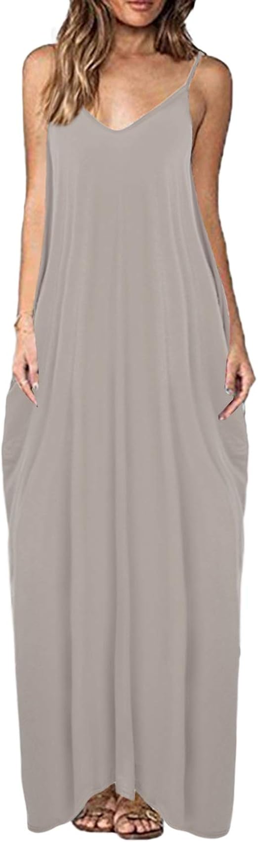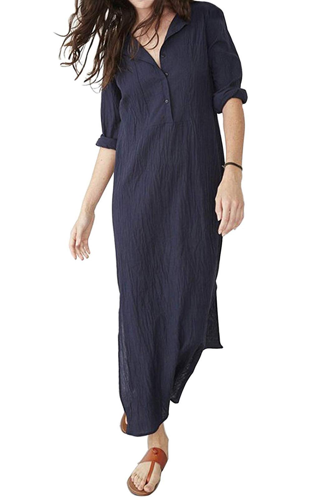 Magimodac Damen Maxikleid Sommerkleid Kleider Boho Party Kleid Leinenkleid Strandkleid Lang Grau Gr 36 50 Bekleidung In Strandkleid Lang Leinenkleid Sommerkleid