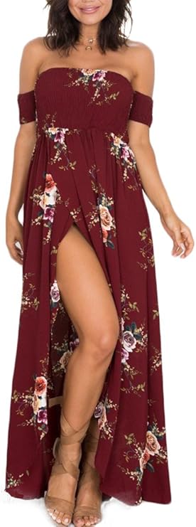 Gremmi Sommerkleider Damen Blumen Maxi Kleid Schulterfreies Abendkleid Strandkleid Party Schulter Kleider Chiffon Kleid Gr 44 2xl Rot Amazon De Kuche Haushalt