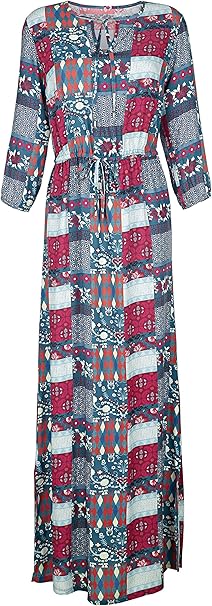 K L Marken Maxi Kleid Mit Patchdruck Blau Bordeaux Gr 38 Gr 40 Gr 42 Gr 44 Gr 46 Gr 48 Gr 50 Gr 52 Amazon De Bekleidung