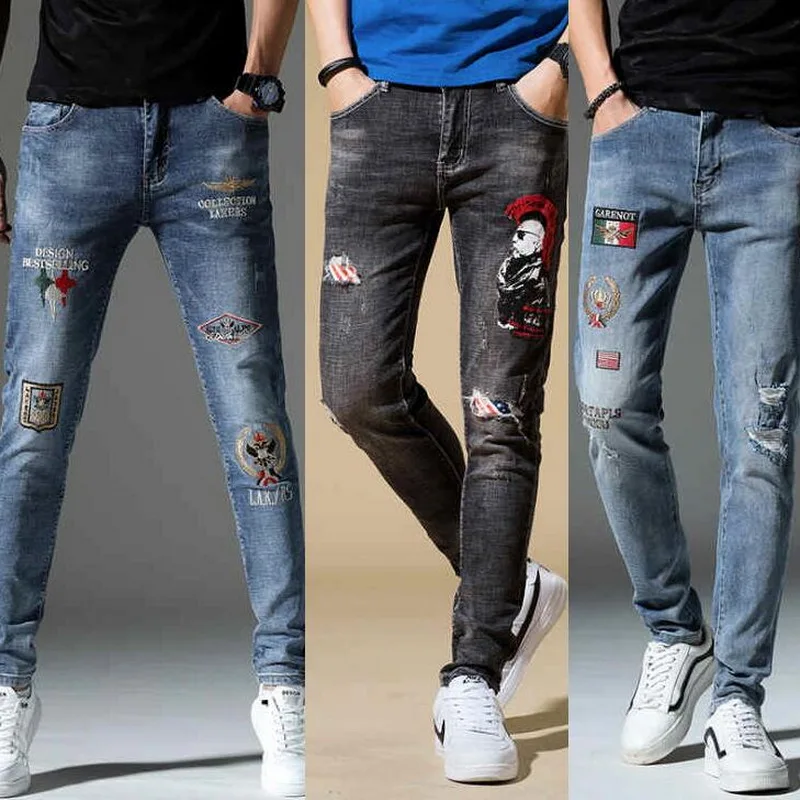 Mens Street Style Ripped Repaired Jeans Patched 4532 Ripped Jeans Men Mens Street Style Streetwear Jeans