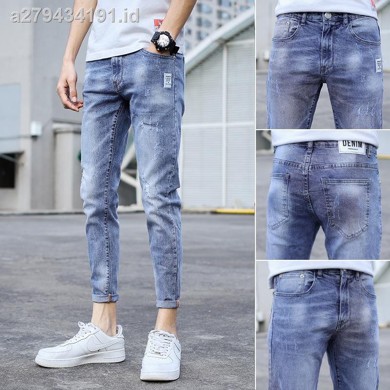 Boyfriend Jeans Hole Thin Section Han Edition Tide Men Jeans S Summer Popular Logo Joker Light Color Cultivate One Morality And Feet Nine Minutes Of Pants Shopee Indonesia