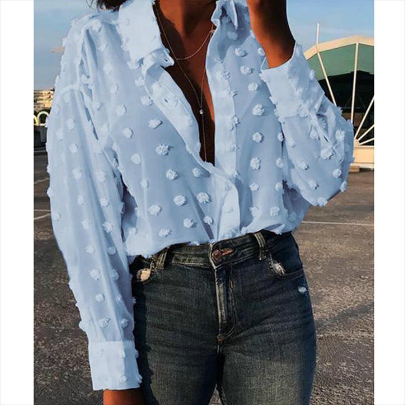 Weisse Punkte Einreihig V Ausschnitt Langarm Beilaufiges Bluse Tops Oberteile Damen Mode Blusen Oberteile