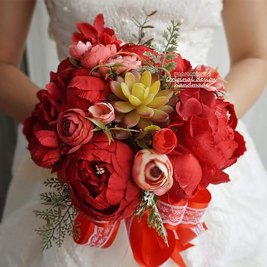 Amazon De Slogan Not Fake Flower Blumenstrauss Casamento Rosa Weiss Rot Blumen Brautstrauss Vintage