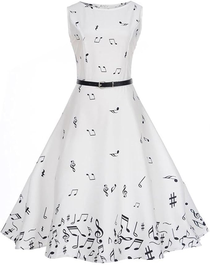 Longra Damen 50s Retro Vintage Rockabilly Kleid Faltenrock Elegant Audrey Hepburn Kleid Mit Musiknote Romantisch Sommerkleid Knielang Frauen Armellos Partykleider Cocktailkleid Amazon De Bekleidung