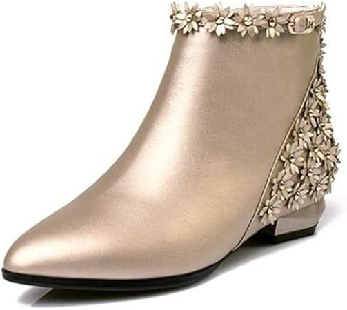 H Y Damen Kleid Schuhe Herbst Winter Neue Komfort Dicke Ferse Booties Damenmode Stiefel Spitze Personlichkeit Stiefeletten Formale Schuhe Hochzeit Party Abend Farbe Gold Grosse 37 Amazon De Garten