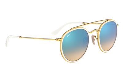 Ray Ban Round Double Bridge Rb3647n Gold Metal Blue Lenses 0rb3647n001 4o51 Ray Ban Usa