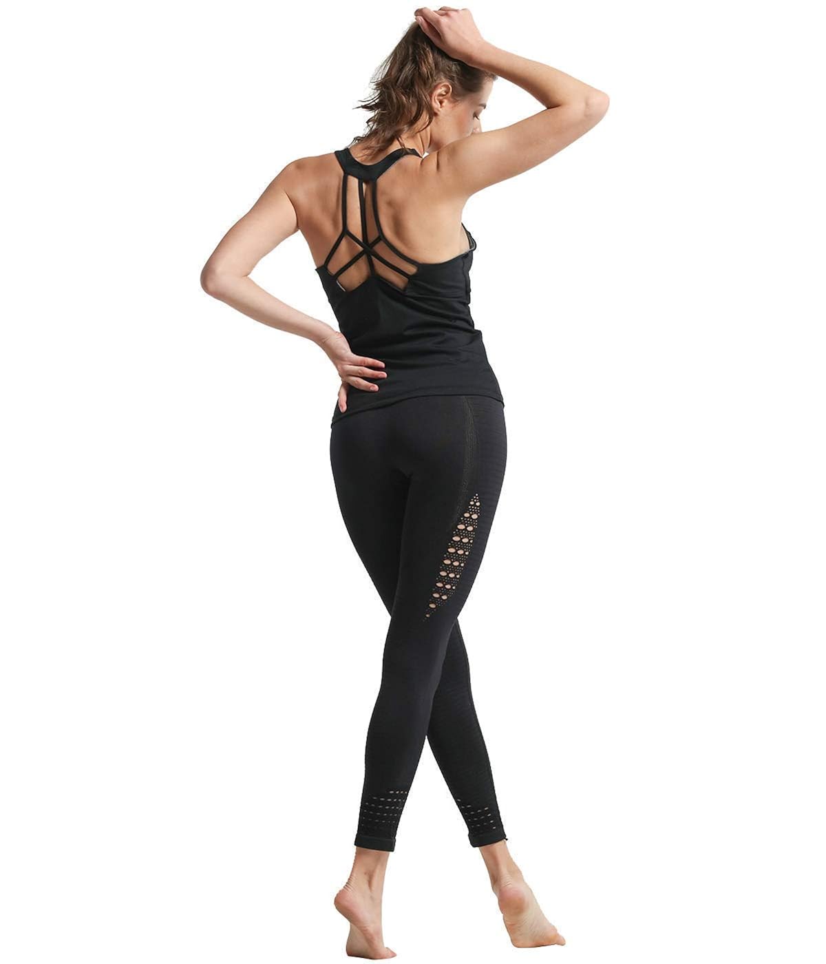 Anyfit Wear BH Top mit Kreuz Schnürung Unterhemd Damen Top mit BH Integriert Tank Top Spagehtti Träger Sexy Yoga Oberteil Shirt Schwarz Größe M 2IN1 BH Top für Damen 2in1top mit bh integriert bietet Ihnen die eingebaute BHUnterstützung, die bequem und geldsparend ist.
