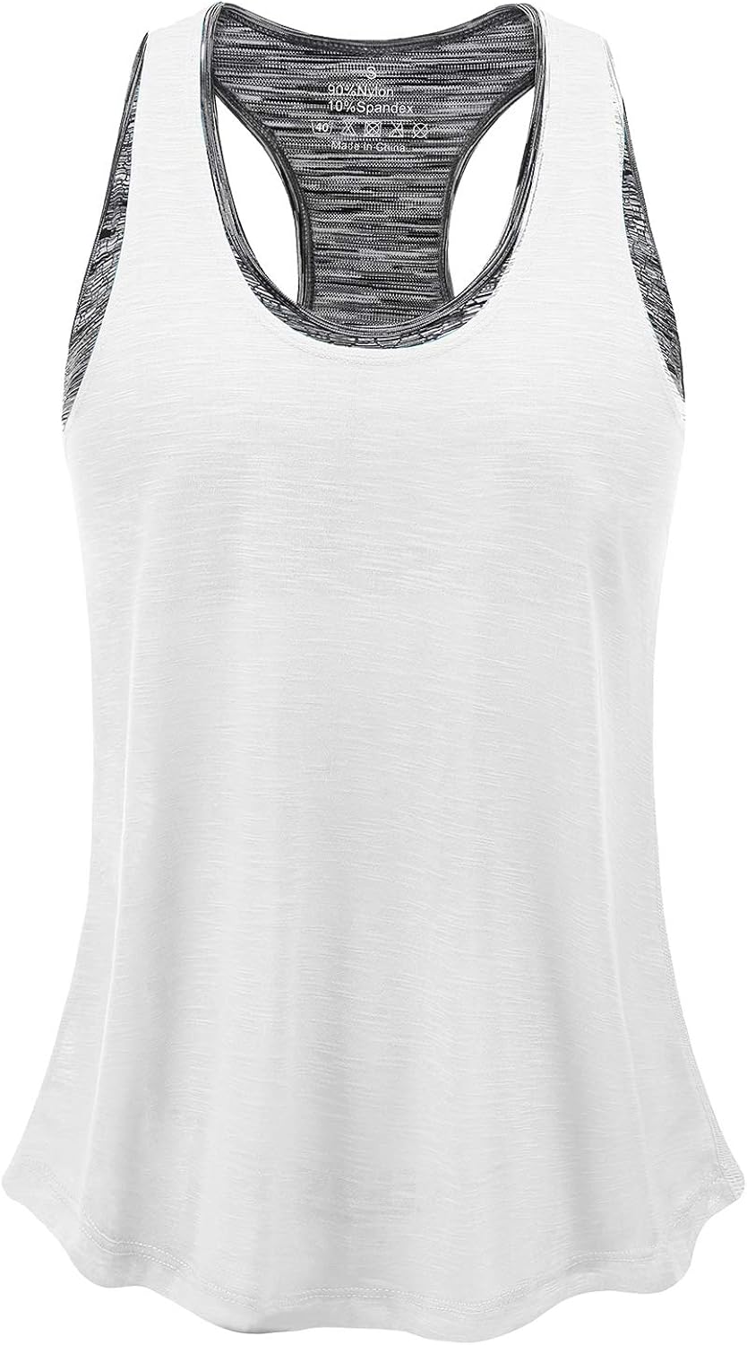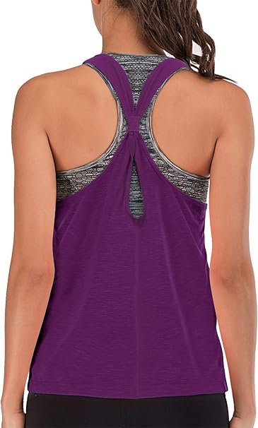 2 In 1 Sport Oberteile Fitness Gym Shirts Icyzone Damen Sport Yoga Tank Top Mit Integriertem