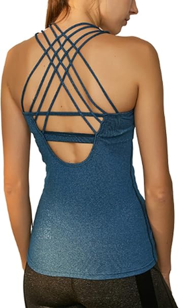 Qing Damen Sport Tanktop Mit Integriertem Bh Yoga Tops Gym Shirt Fitness Training Oberteile Blau Blau Amazon De Bekleidung