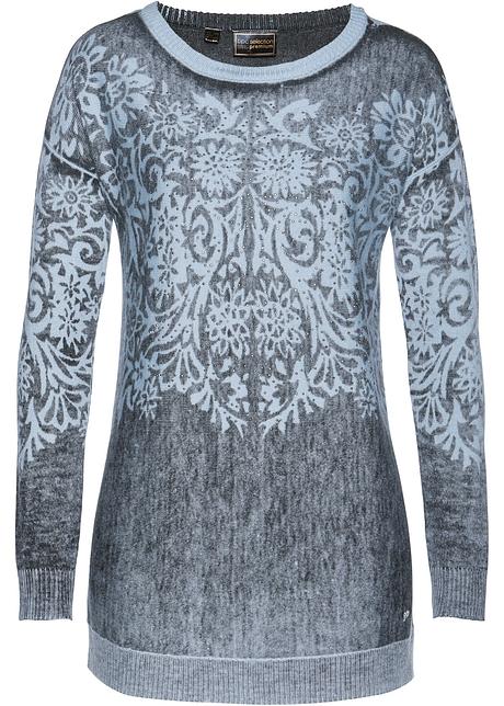 Edler Pullover Mit U Boot Ausschnitt Anthrazit Puderblau Bedruckt
