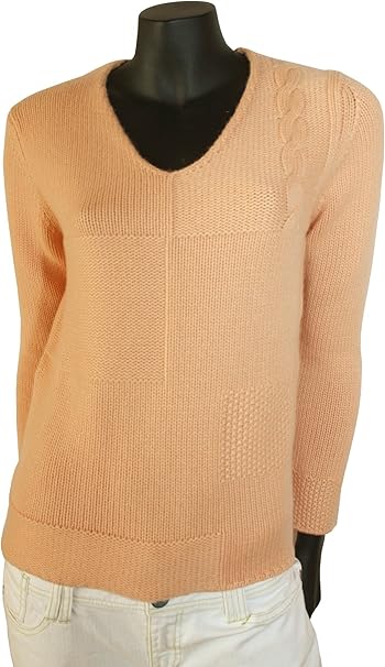 Ermano Edler Sehr Hochwertiger Kaschmir V Pullover Mit Rustikalen Groben Strickstrukturen Sowie Zopfmuster Im Vorderteil Qualitat 100 Kaschmir Cashmere Fur Damen Farbe Pfirsich Gr 44 Amazon De Bekleidung